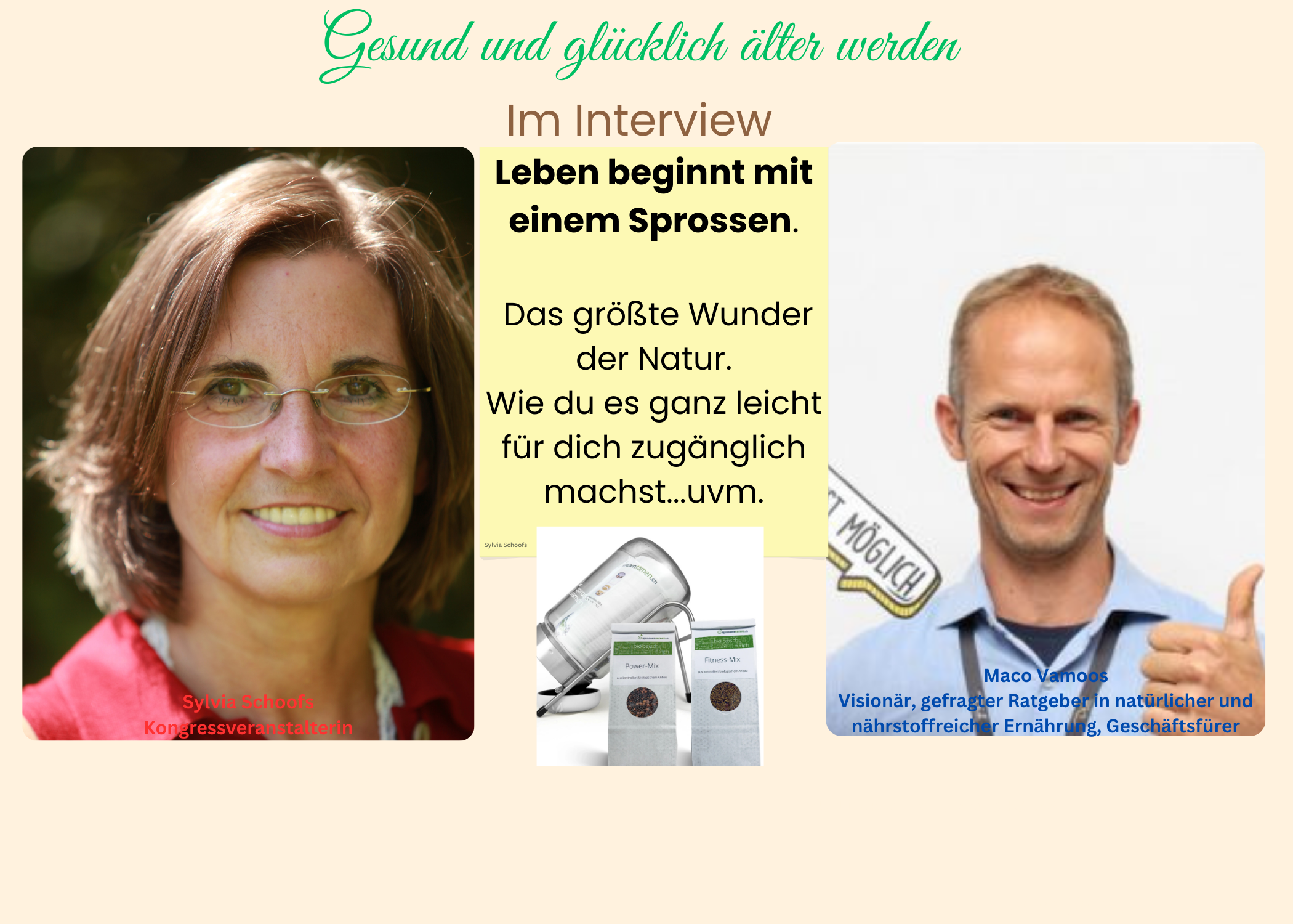 Thema: Ganzheitliche, vitalstoffreiche Ernährung mit Sprossen und Grünkraut. Vorteile eines besonders hochwertiges Equipment, Wasserqualität. Tips zur Anzucht, Pflege und Anwendung.